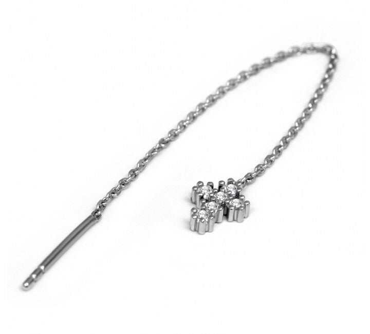 These gorgeous 925 Sterling silver thread earrings features a mini cross encrusted in natural crystals . Adjust it to the perfect length by pulling down.