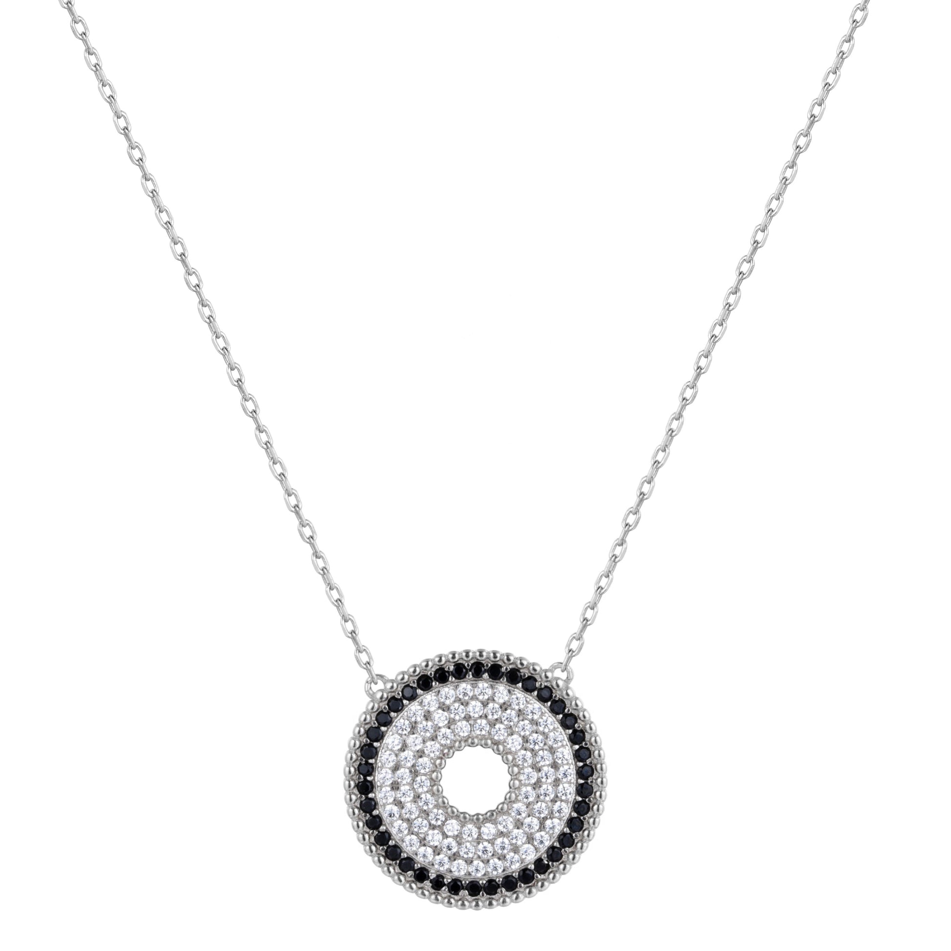 This timeless round necklace symbolises the infinite nature of energy and the universe being sacred and divine. Encrusted with natural and black crystals and handmade with Sterling Silver 925.