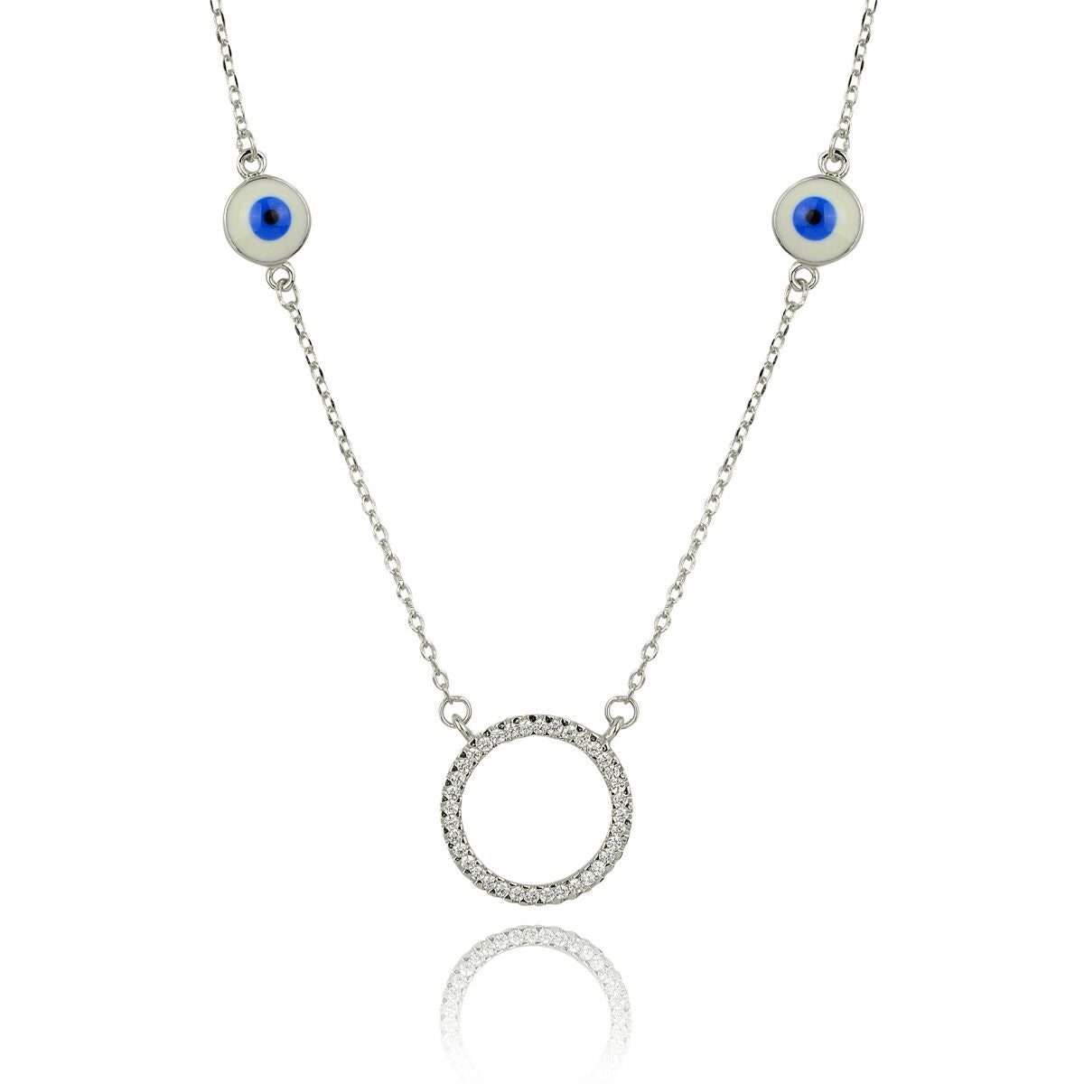 Exquisite handcrafted Evil Eye necklace featuring a circle of life and two murano protective eyes. In many cultures, this protective symbol wards off negative energy.