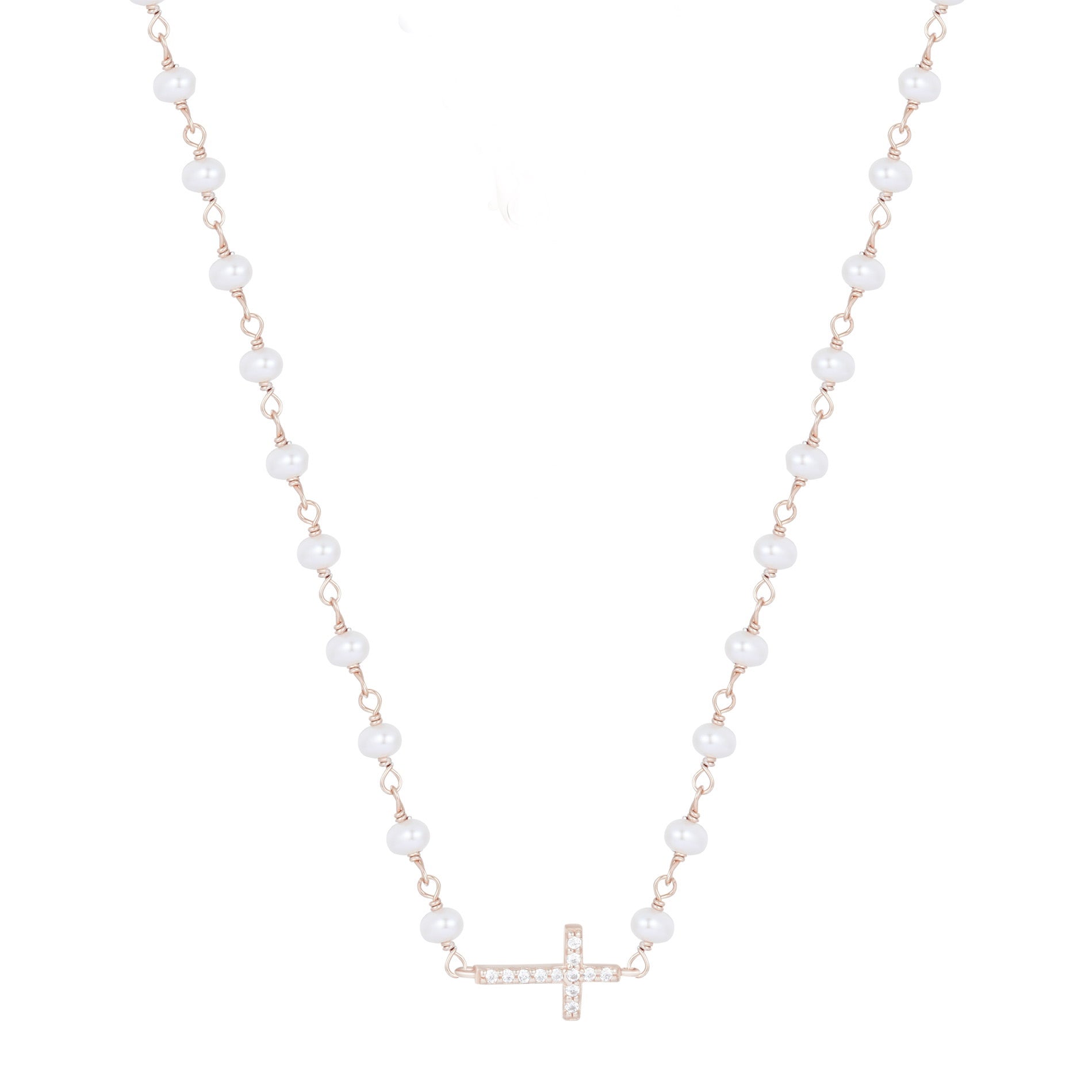 KATERINA CROSS PEARL BEADED ROSE GOLD NECKLACE