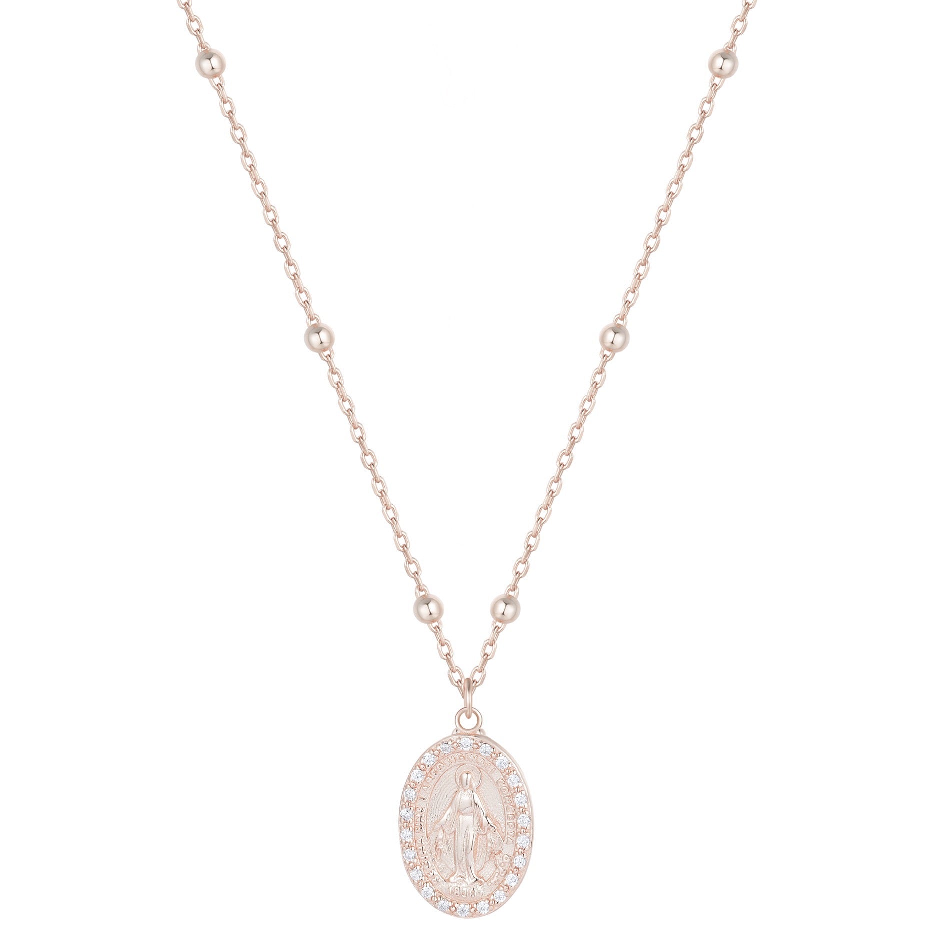 MINI MARY CRYSTAL ROSE GOLD BEADED NECKLACE
